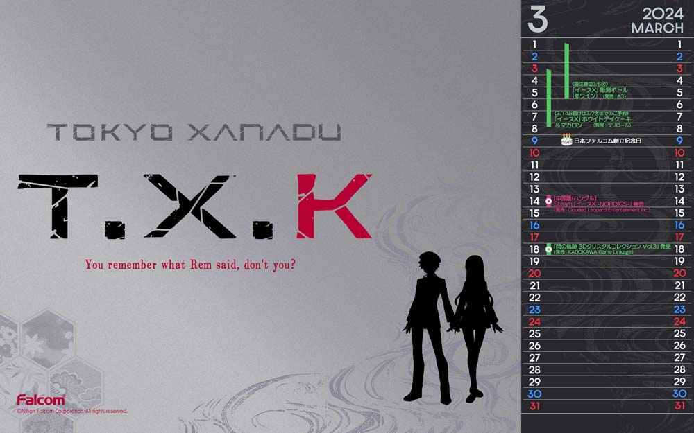 3月のカレンダーがなぜか東京ザナドゥのswitch特典のアレ