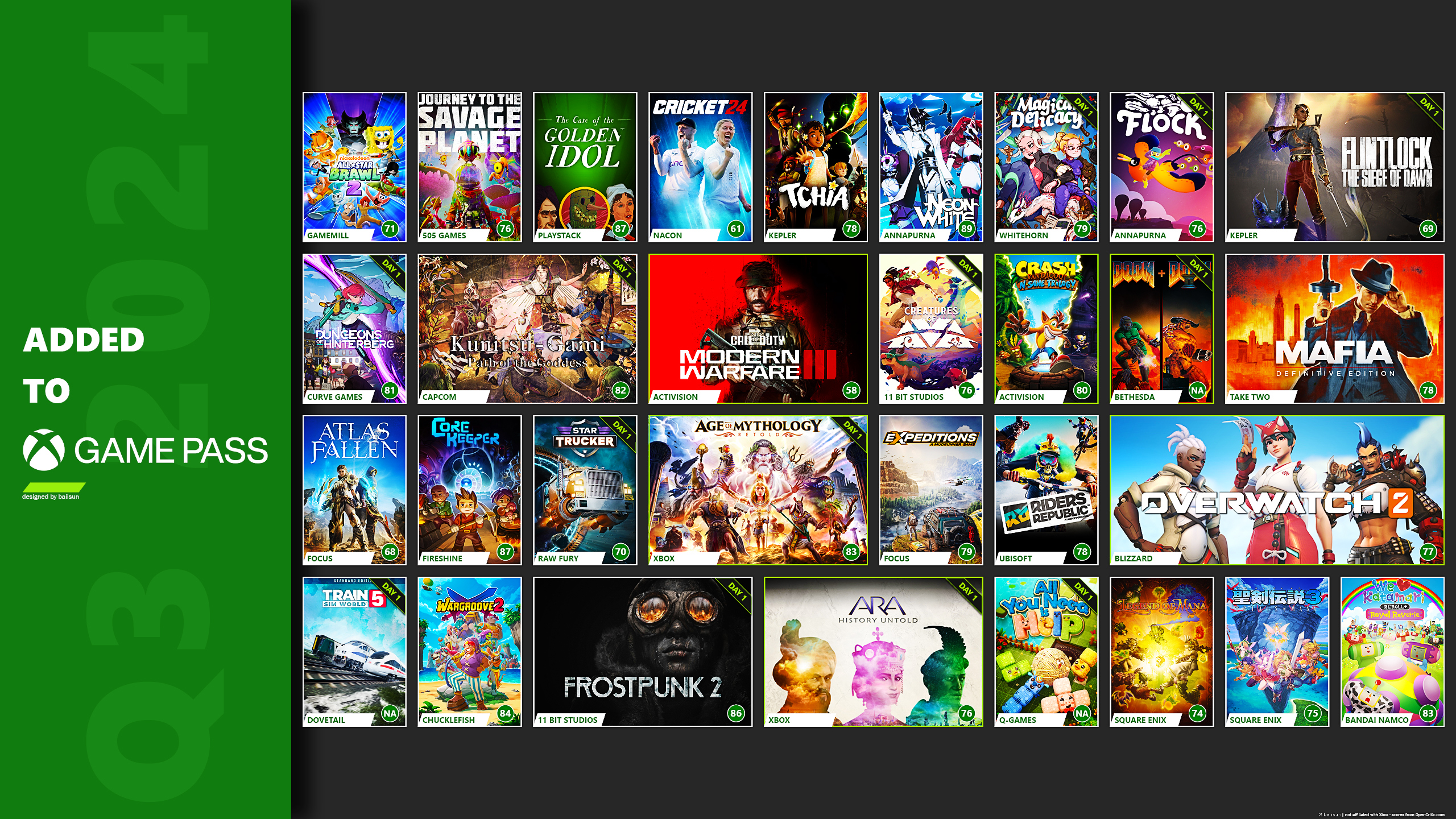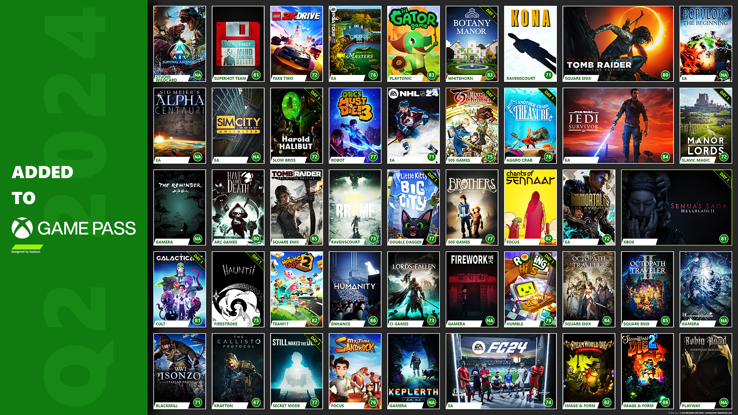 OpenCriticの平均スコア77.2 (-0.1 vs 2023)